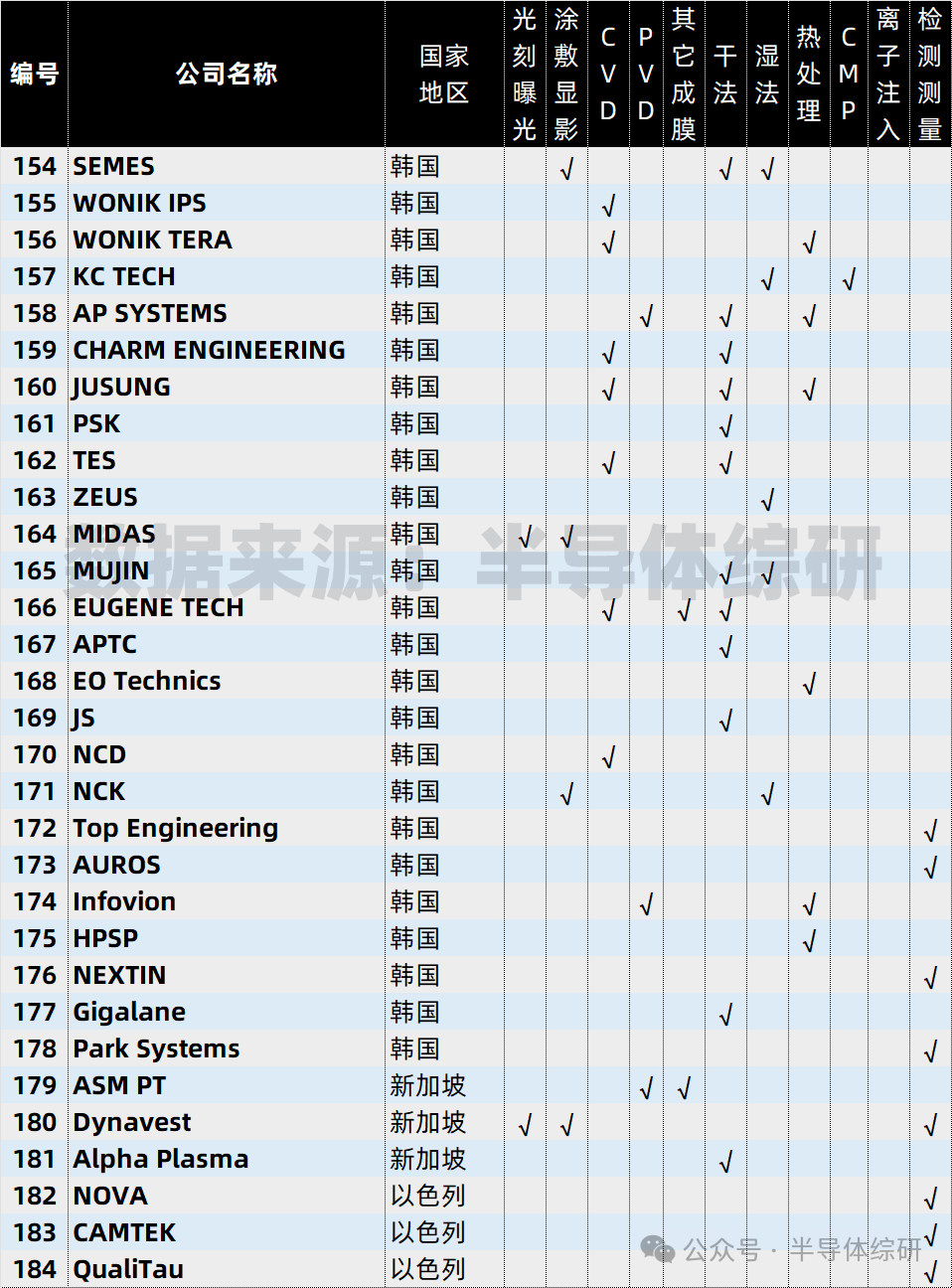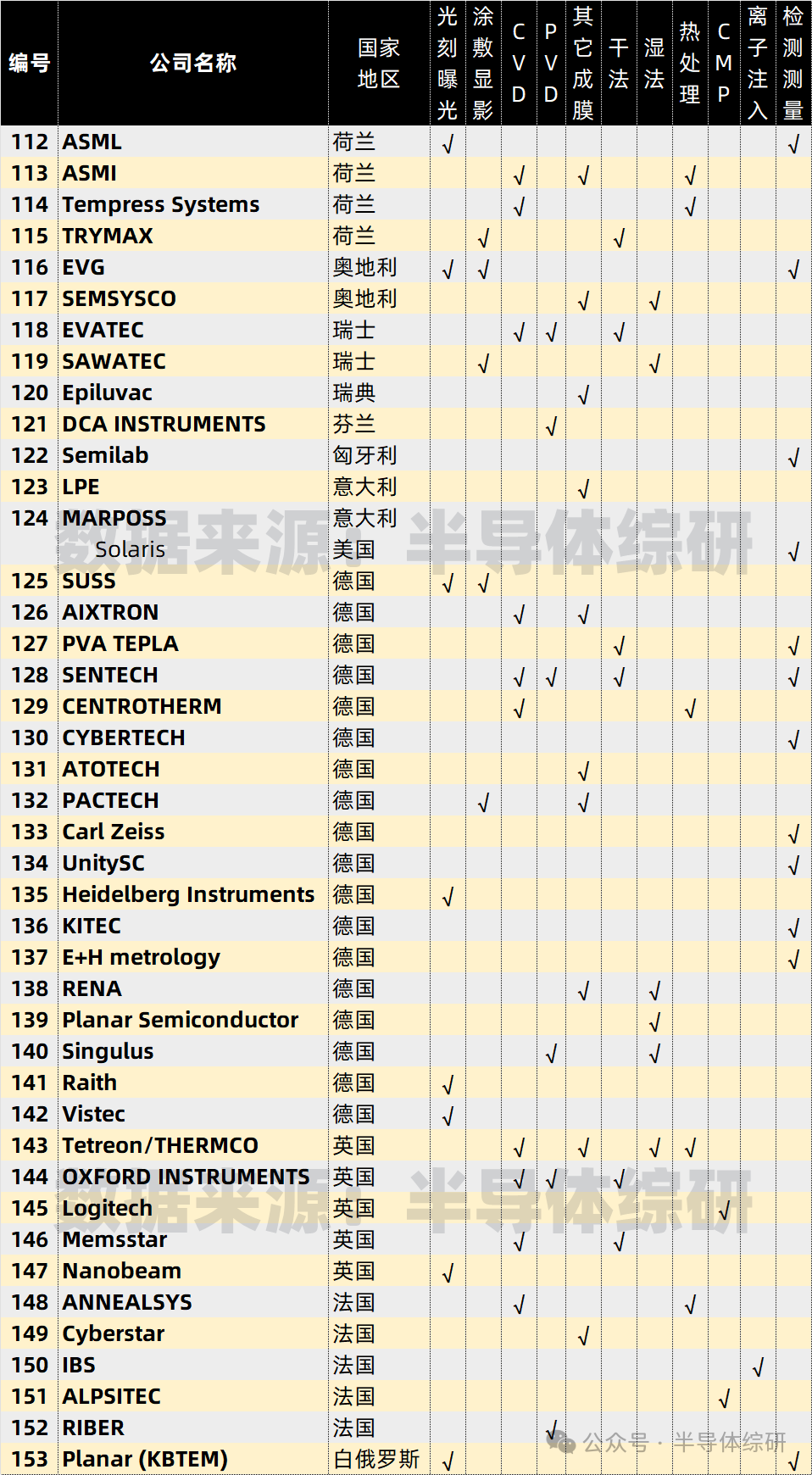 全球前道設(shè)備供應(yīng)商總名單