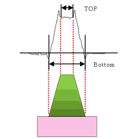 也就是說,圖 4.2.2 中的圖像給出了線輪廓,而輪廓又給出了線寬。如果線橫截面呈梯形,如圖 4.2.4 所示,則頂部和底部的寬度將不同。在這種情況下,測量位置將在配方中指定。此外,還可以指定所需的高度位置。