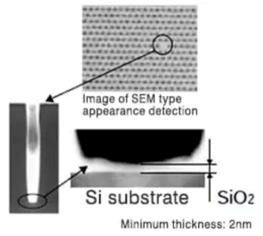 此外,電子束檢測系統(tǒng)根據(jù)設(shè)備內(nèi)部布線的導電性,將二次電子的數(shù)量檢測為圖像對比度(電壓對比度)。如果檢測高深寬比的接觸孔底部的電導率,可以檢測到超薄厚度的SiO2殘留物。