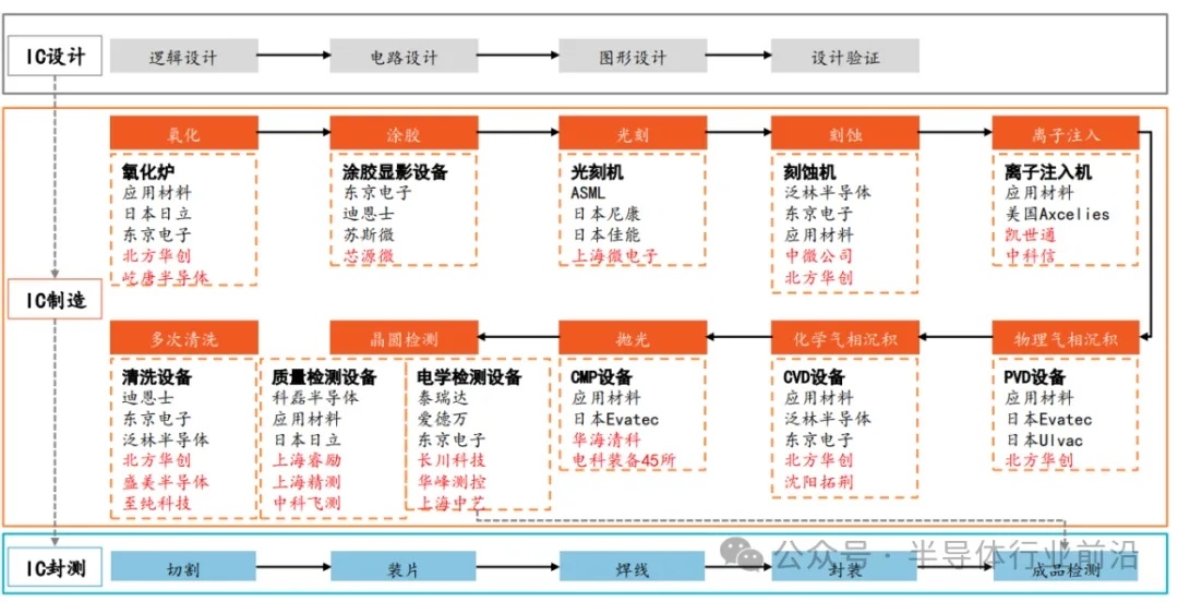 圖1:晶圓廠半導體制造流程及相關(guān)半導體設(shè)備示意圖