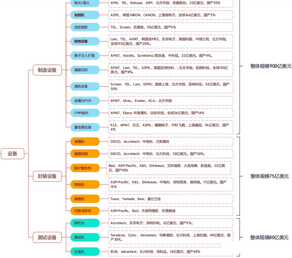 從全球范圍來看,半導(dǎo)體產(chǎn)業(yè)鏈的發(fā)展呈現(xiàn)出區(qū)域分布的特點(diǎn)。歐美在設(shè)計、設(shè)備領(lǐng)域占據(jù)主導(dǎo)地位,美國在EDA&IP核方面一家獨(dú)大;韓國在存儲IC設(shè)計方面具有優(yōu)勢;日本則在DAO、設(shè)備方面表現(xiàn)突出;而中國則在封測代工環(huán)節(jié)占比最高。