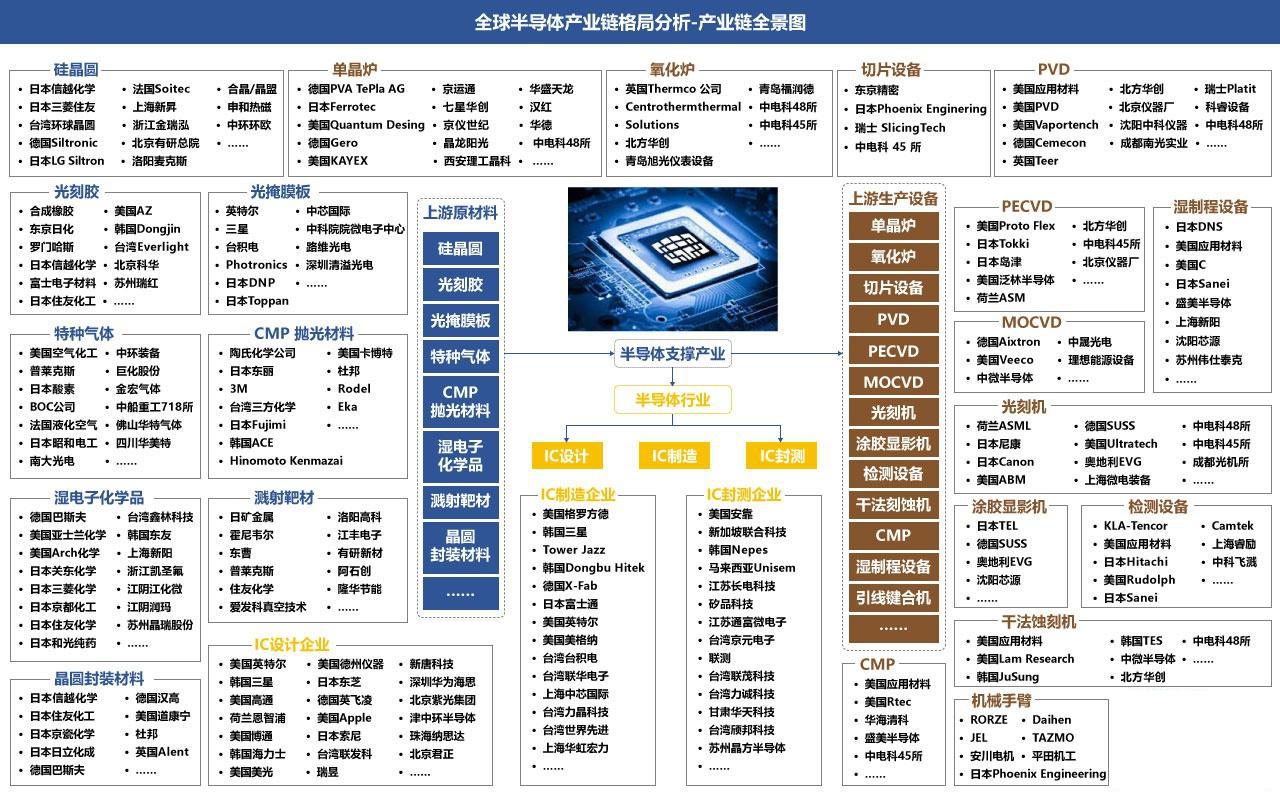 半導(dǎo)體產(chǎn)業(yè)鏈大致可以劃分為上游、中游和下游三個主要部分。上游是半導(dǎo)體產(chǎn)業(yè)的支撐環(huán)節(jié),主要由半導(dǎo)體材料和半導(dǎo)體設(shè)備構(gòu)成。半導(dǎo)體材料是晶圓制造與芯片封裝的關(guān)鍵基礎(chǔ),其性能直接影響到最終產(chǎn)品的質(zhì)量和性能。